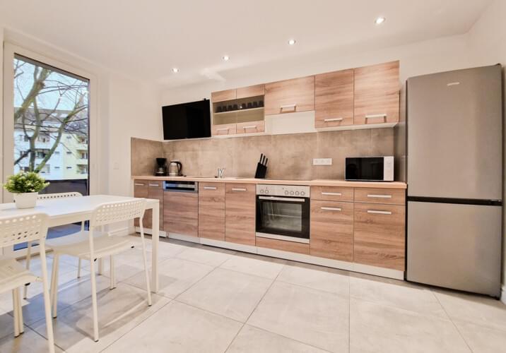 Unsere Wohnungen haben alle eine voll ausgestattete Küche, ein eigenes Bad und: