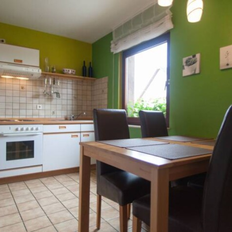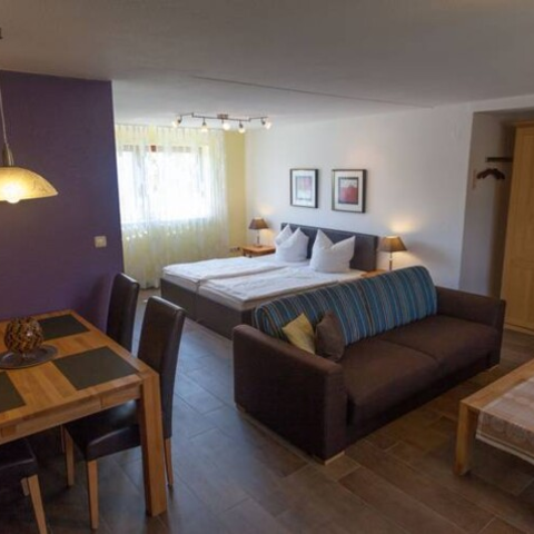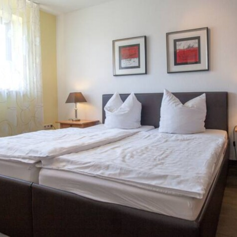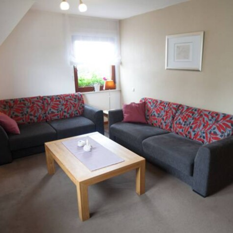 Fewo 3 (2-4 Pers.) mit Fußbodenheizung sowie Boxspring-Doppelbett & Schrank im Schlafzimmer. Wohnzimmer mit Sofa, hochwertiger Schlafcouch (3-4 Person), TV, Radio. Komfortabel ausgestattete Küche mit Tisch & 4 Stühlen. Bad mit Wanne/Dusche & WC.
