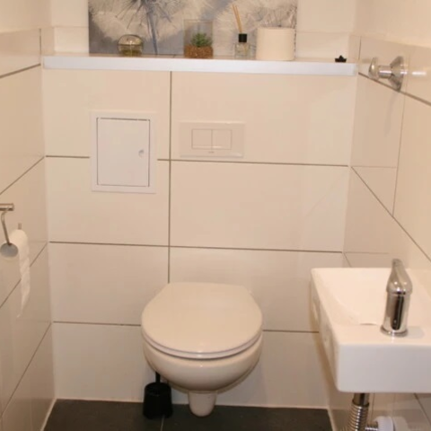 Toilette, kleines Waschbecken, Abluft