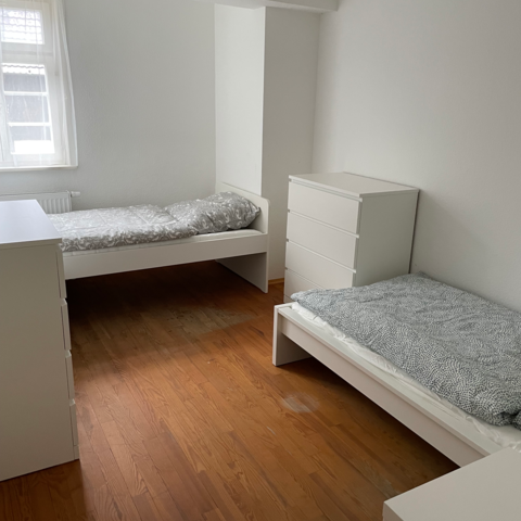 Das Haus hat 13 Zimmer, 8 Einzelzimmer und 5 Doppelzimmer . Es gibt zwei Gemeinschaft Badezimmer mit einer Duschkabine , 3 Waschmaschine dazu gibt es eine separate. Zwei gemeinsame Küche und die aind komplett ausgestattet. Draußen gibt es eine Möglichkeit zum grillen und zum rauchen.