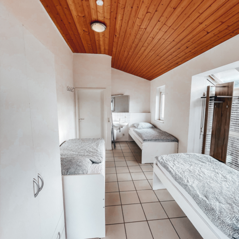 Aufteilung: 3 Schlafzimmer, 7 Einzelbetten, 1 Badezimmer und 1 Duschbad