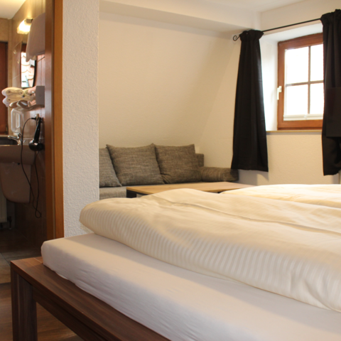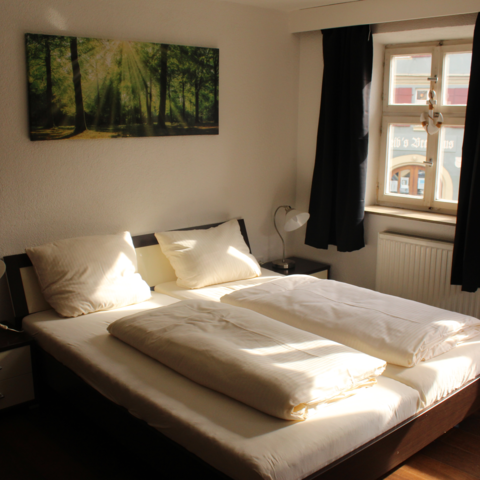 Wir bieten Ihnen mehrere anspruchsvolle und neu eingerichtete NICHTRAUCHER Monteur-/ Doppelzimmer sowie Einzelzimmer, Badezimmer mit Dusche und WC, Kabel-TV, Gäste-WLAN in der Altstadt von Dinkelsbühl.