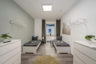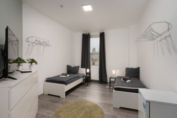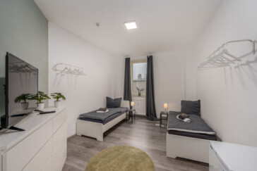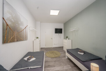 - Schlafzimmer mit Einzelbetten, Schlafcouch, Kleiderschrank/Kommode/Garderobe