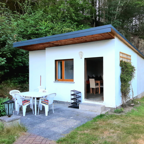 Unser kleiner Bungalow in Alleinlage, jedoch verkehrstechnisch gut angebunden, befindet sich zwischen Waldrand und Müglitz.