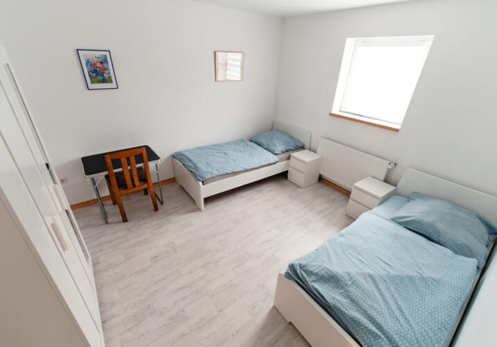 Wir bieten auf 2 Wohnungen aufgeteilt insgesamt 6 Doppelzimmer und 2 Einzelzimmer.