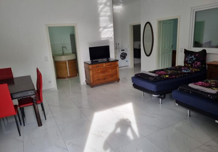 Großes Bad, voll inventarisierte Küche und das in einer absolut ruhigen Umgebung, so bietet das Apartment mit seinen etwa 100 m² bis zu 8 Gästen Platz.