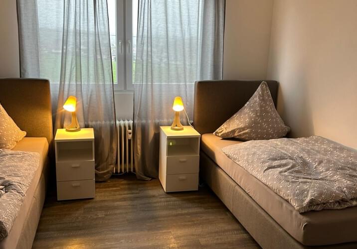 - Es handelt sich hierbei um eine Wohnung mit 4 abschließbaren Raümen mit je zwei Betten. 1 x Gemeinschaftsküche 1 x Gemeinschftsbadezimmer (nur Dusche) 1 x Waschmaschine