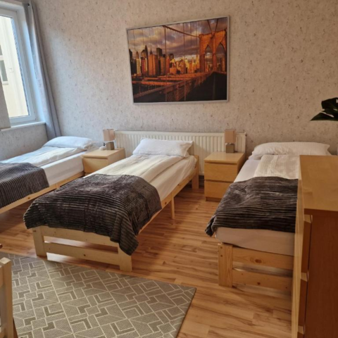 Die Wohnung ist ca. 75qm groß, besteht aus 3 Schlafzimmer mit jeweils zwei Einbettzimmer und ein Dreibettzimmer einer vollausgestatteten Küche und einem neu sanierten Badezimmer.
