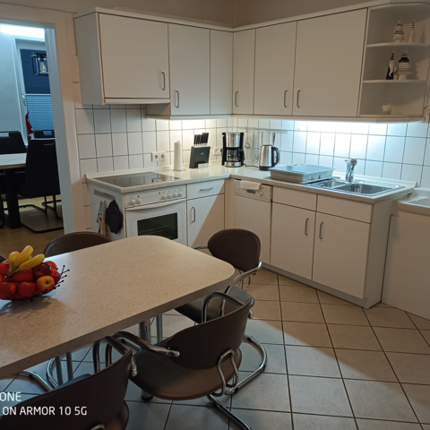 Die Küche ist komplett eingerichtet: Herd mit Backofen und Mikrowelle, Geschirrspüler, Kaffeemaschine, Toaster und vieles mehr stehen Ihnen zur Verfügung. Ein Kühlschrank und eine Gefriertruhe sind ebenfalls vorhanden und können genutzt werden. In einem Wohnzimmer mit Smart-TV machen Sie es sich gemütlich und im Esszimmer können alle Gäste an einem großen Esstisch gemeinsam platz nehmen.