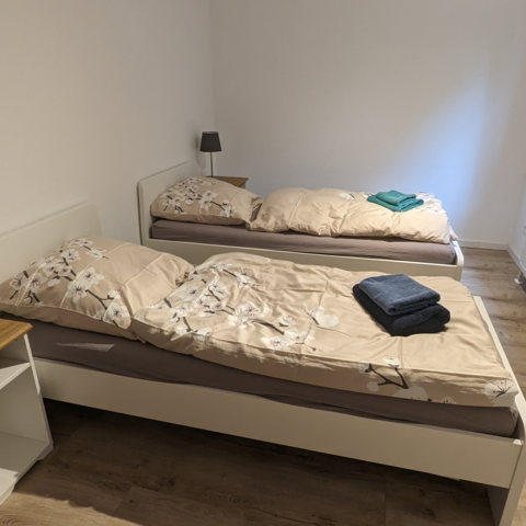 Vermietet wird eine vollständige 2 -Zimmer Wohnung für 2 Gäste. Das heißt, die Tagespauschal für die Wohnung beträgt insgesamt 55,-€.
