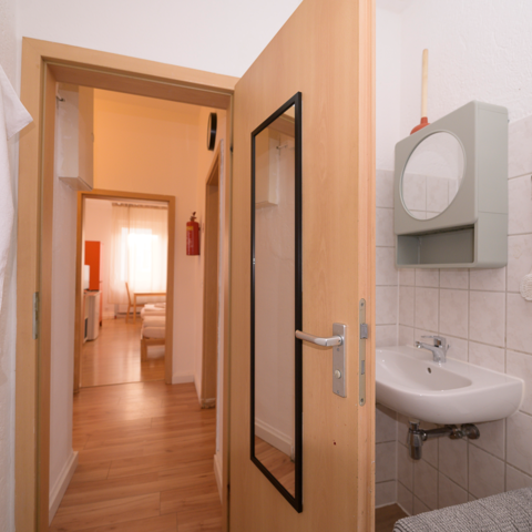 Diese Wohnung hat 2 Doppelzimmer und 1 Einzelzimmer - für 5 Personen geeignet.