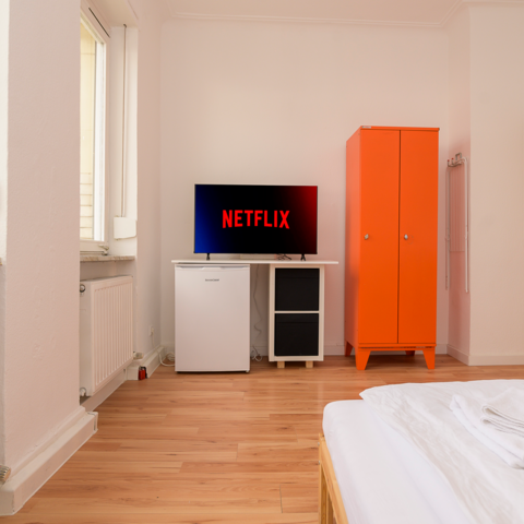 Alle Zimmer verfügen über einen Smart TV, einen Wasserkocher, Highspeed WLAN und einen Kühlschrank.