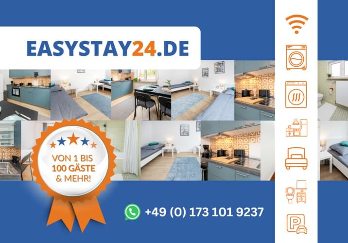 Wir vom Team Easystay24 freuen uns auf Ihre Anfrage – per Telefon, E-Mail oder WhatsApp sind wir jederzeit für Sie erreichbar. Ihr angenehmer und reibungsloser Aufenthalt liegt uns am Herzen, und wir kümmern uns um Ihre Anliegen!