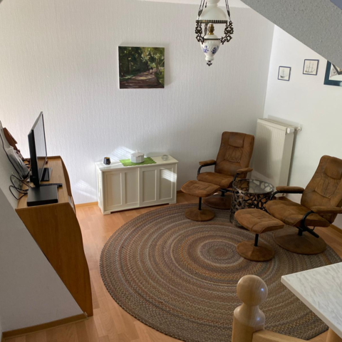 Wohnung 1 – 1 DZ, 1 kleines EZ, Bad mit Dusche/ WC und großer Wohn-/ Essbereich