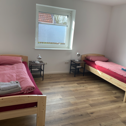 Wohnung 5 – 1 DZ, 2 Vierbettzimmer, 2 Bäder mit Dusche/ WC, große Küche und großer Wohnbereich