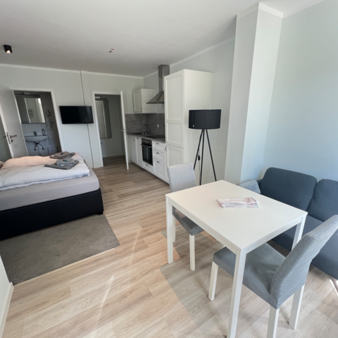Die Vermietung erfolgt ohne Frühstück. Frühstück oder kleinere Mahlzeiten können direkt in der Gästewohnung in einer funktionell ausgestatteten Küche selbst zubereitet werden.