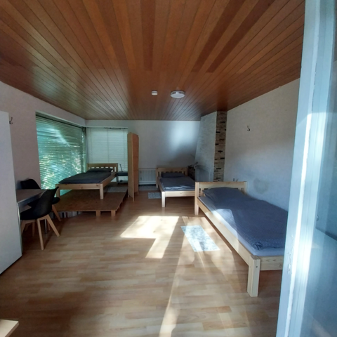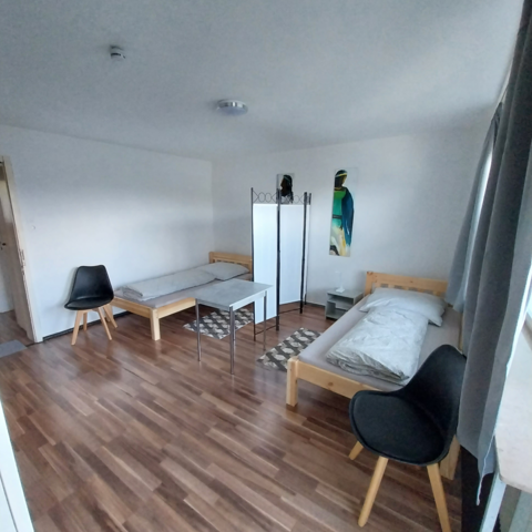 Unser Haus verfügt über modern eingerichtete Einzel-, Zwei- und Dreibettzimmer, zwei vollausgestattete Gemeinschaftsküchen mit Herd, Kaffeemaschine, mehrere Kühlschranke, Wasserkocher und Mikrowelle, ein Gemeinschaftsraum , 3 Badezimmer, 3 Toiletten, Waschmaschine. In jedem Zimmer befinden sich ein Fernseher, WLAN und USB Anschluss. Von den Zimmern aus, befindet sich ein Zugang zu Balkon oder Terrasse. Es steht in der warmen Jahreszeit eine große Wiese zur Erholung zur Verfügung. Die Gemeinschaftsräume werden wöchentlich gereinigt, Bettwäsche wird 14 -tägig gewechselt. Für die Zimmer steht Reinigungsmaterial zur Verfügung. Die Preise verstehen sich inkl. Bettwäsche. Es stehen 4 Parkplätze zur Verfügung.