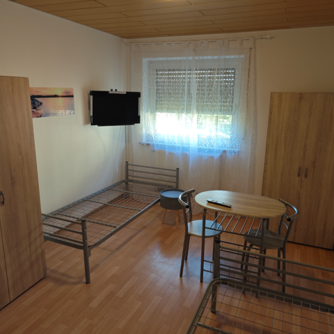 Jedes Zimmer ist mit einem SMART TV, Tisch/Stühlen, Kleiderschränken und Betten (mit Materatzen) ausgestattet.