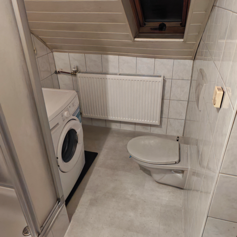 Jedes Bad hat ein WC. Darüber hinaus ist jedes Bad mit einer Waschmaschine ausgestattet.