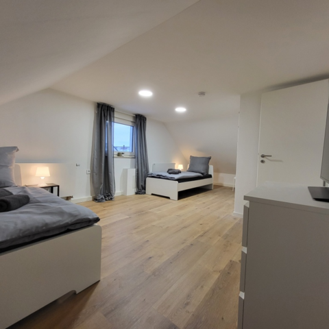 + Die Wohnung im Obergeschoss besteht aus zwei Doppelzimmern + zwei Doppelzimmern im Dachgeschoss und bietet somit Platz für acht Personen