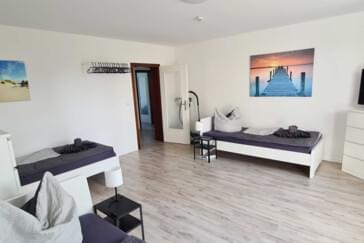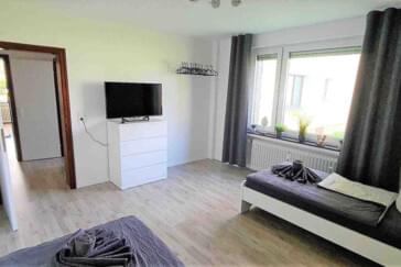 - Schlafzimmer mit Einzelbetten, Schlafcouch, Kleiderschrank/Kommode/Garderobe
