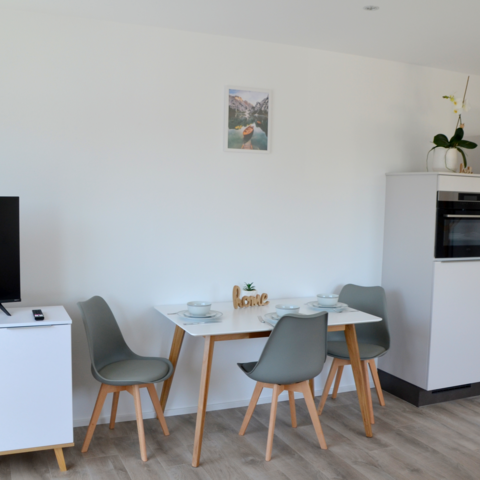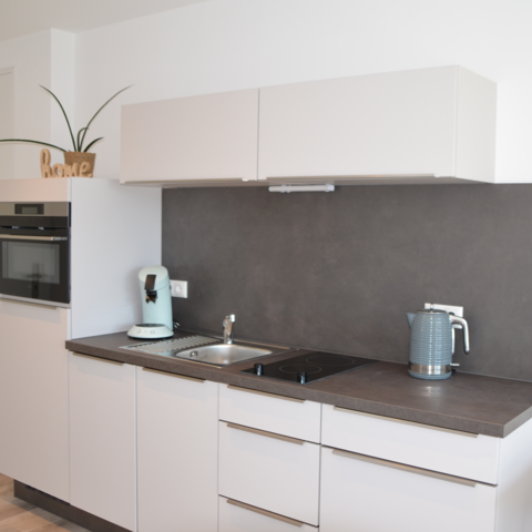 - jedes Apartment mit Vollausstattung der Küche: Geschirrspüler, Kühlschrank, Backofen/Mikrowelle, Induktionsherd, Kaffeemaschine, Wasserkocher, Besteck, Töpfe, Geschirr