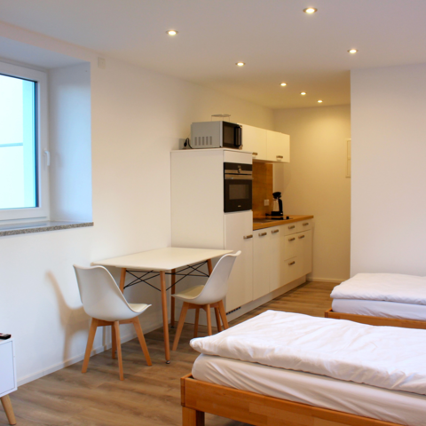 Neu gebaute Mikroapartments mit voll ausgestatteter Küche, Bad/WC für 1-3 Personen, TV, WLAN/WiFi (über 200 Mbit/s), Einzelbetten, reichlich kostenlose Parkplätze auch für Transporter!