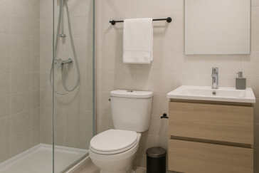 Bequeme Betten mit frischer Bettwäsche, geräumige Kleiderschränke für persönlichen Stauraum – teilweise abschließbar (auf Wunsch mit Safe), TV mit internationalen Programmen, Tische und Sitzgelegenheiten zum Arbeiten oder Entspannen, kostenfreies WLAN im gesamten Haus.
