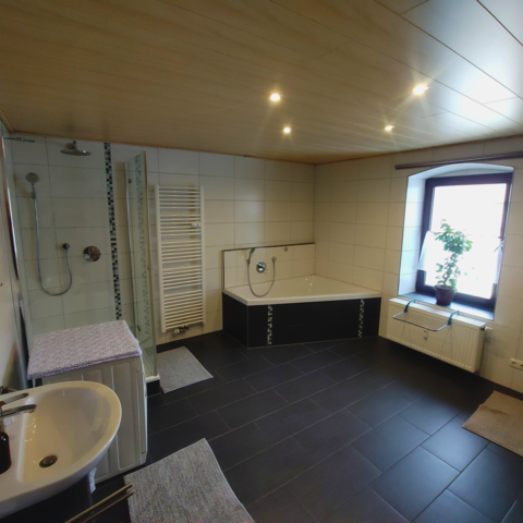 Die geräumige und voll ausgestattete Wohnung bietet mit 84qm ausreichend Platz für bis zu sechs Personen. Eine großzügige Küche mit Esstisch und Stühlen bietet alles, was man für eine Selbstversorgung benötigt. Das große Badezimmer verfügt über eine Dusche und eine Badewanne . Es stehen zwei Fernseher zur Verfügung, die für gemütliche Abende genutzt werden kann.