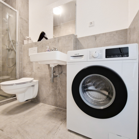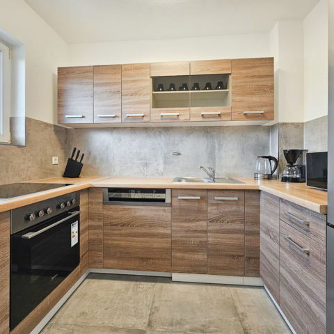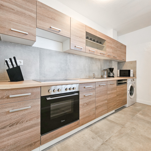 Unsere Wohnungen haben alle eine voll ausgestattete Küche, ein eigenes Bad und:
