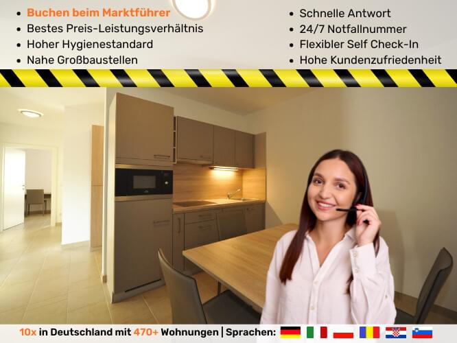 Mit unseren hochwertigen Monteurzimmern in Dresden erhalten einzelne Monteure und größere Unternehmen eine bequeme Basis, um sich voll und ganz ihrem eigentlichen Ziel zu widmen: dem erfolgreichen Montageeinsatz im wunderschönen Dresden. Aufgrund unserer internationalen Erfahrung in der Vermietung von Monteurwohnungen können Sie sich auch bei unseren Monteurzimmern in Dresden auf ein stimmiges Komplettpaket verlassen. Denn unsere Apartments überzeugen dank neuwertiger Ausstattung und bester Lage – und all das zu einem bezahlbaren Preis!