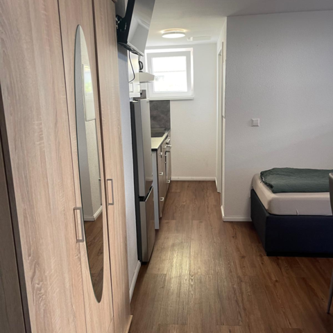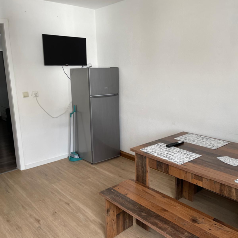 Die helle und frisch renovierte Wohnung überzeugt durch ein großzügiges Wohnzimmer, Schlafzimmer, ein Badezimmer sowie eine voll ausgestattete Küche. Jedes Schlafzimmer verfügt über einen separaten Eingang, was die Raumaufteilung besonders praktisch macht. Das große und helle Wohnzimmer ist gemütlich eingerichtet und mit einem Fernseher sowie dekorativen Elementen ausgestattet.