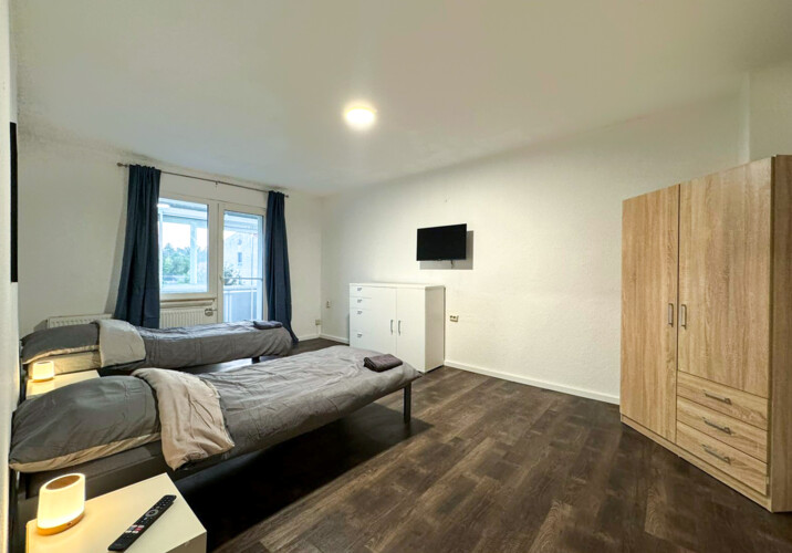 Diese geräumige, voll ausgestattete 2-Zimmer-Wohnung bietet Monteuren und Geschäftsreisenden eine komfortable Unterkunft in ruhiger Lage. Ideal für Teams bis zu 4 Personen.