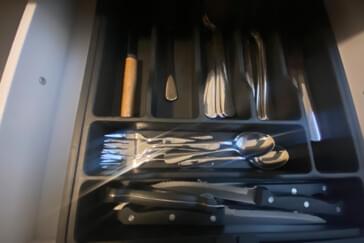 Voll ausgestattete Küchen (Backofen/Herd, Mikrowelle, Kaffeemaschine, Wasserkocher, komplettes Geschirr). Besonderheit: Extragroßer Kühlschrank und ein Geschirrspüler. Kosteneffiziente Selbstversorgung und gemeinsames Kochen.