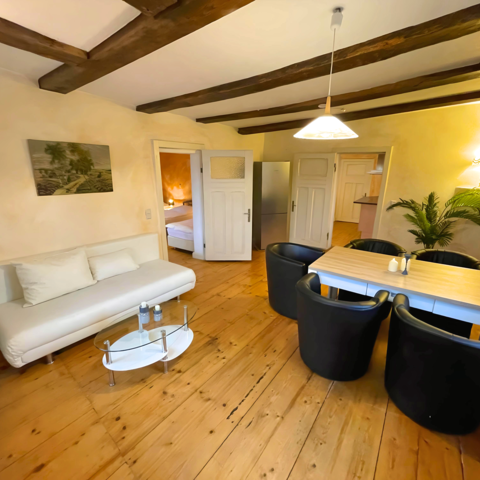 Restauriertes Fachwerkhaus mit 5 separaten Monteurwohnungen und gemütlichem Garten.