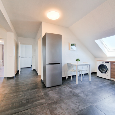Unsere Wohnungen haben alle eine voll ausgestattete Küche, ein eigenes Bad und: