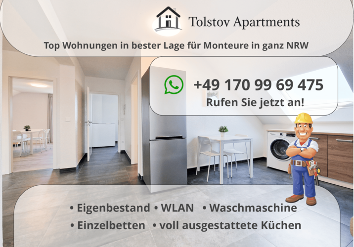 Tolstov Apartment bietet Ihnen verschiedene Wohnungen und Häuser in NRW an.