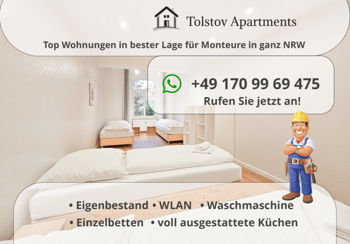 Tolstov Apartment bietet Ihnen verschiedene Wohnungen und Häuser in NRW an.