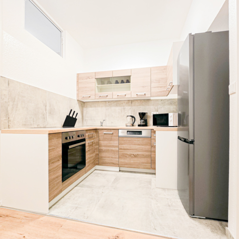 Unsere Wohnungen haben alle eine voll ausgestattete Küche, ein eigenes Bad und: