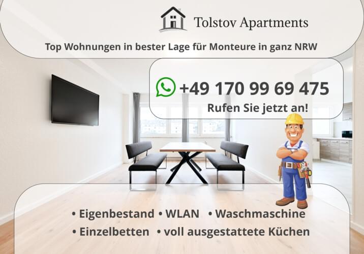 Tolstov Apartments Monteurwohnungen - Vollausgestattete Wohnung in Köln – Perfekt für längere Aufenthalte