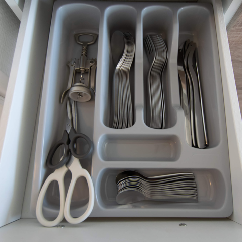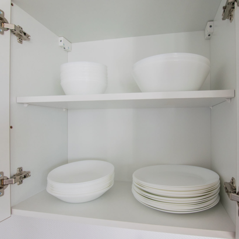 Küche: Kühl-Gefrierkombinationen, Spülmaschine, Backofen, Mikrowelle, Kaffeemaschine, Toaster, Wasserkocher, Töpfe, Pfannen, Geschirr, Gläser, Tassen, Besteck, diverse Kochutensilien, Gewürze, Kaffee, Kaffeefilter, Öl, Zucker und Süßstoff