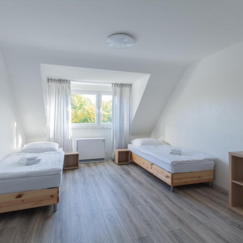 Benachbarte Monteurwohnungenen mit separaten Einzelbetten ideal für größere Teams