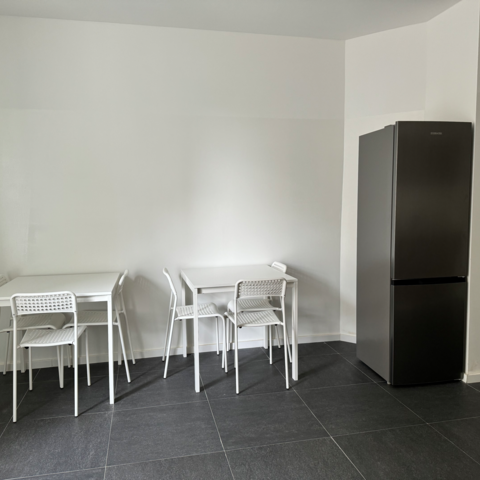 Küche: Kühl-Gefrierkombinationen, Spülmaschine, Backofen, Mikrowelle, Kaffeemaschine, Toaster, Wasserkocher, Töpfe, Pfannen, Geschirr, Gläser, Tassen, Besteck, diverse Kochutensilien, Gewürze, Kaffee, Kaffeefilter, Öl, Zucker und Süßstoff