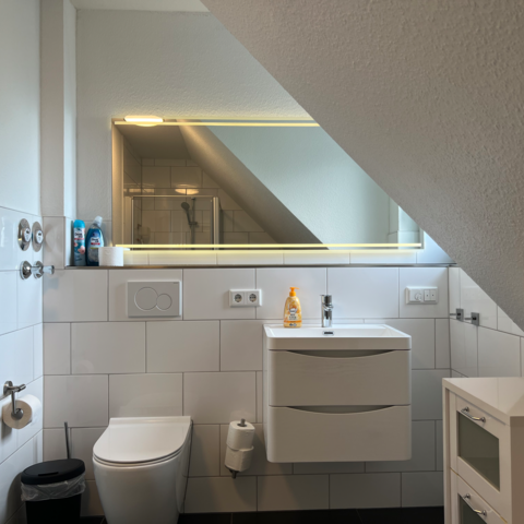 Badezimmer: Seife, Fön, Toilettenpapier Reinigungsutensilien: Staubsauger, Wischset, diverse Reinigungsmittel