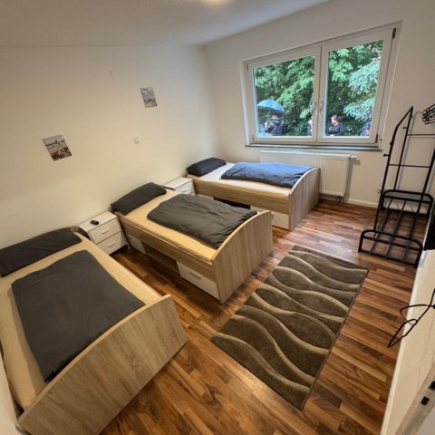 Die Wohnung verfügt über drei geräumige Schlafzimmer mit bequemen Einzelbetten (keine Etagenbetten!), ausreichend Stauraum und einem einladenden, gemütlichen Ambiente. Auch bei längeren Aufenthalten findet hier jeder seinen Rückzugsort zum Ausruhen und Erholen.