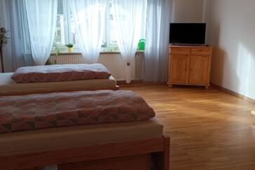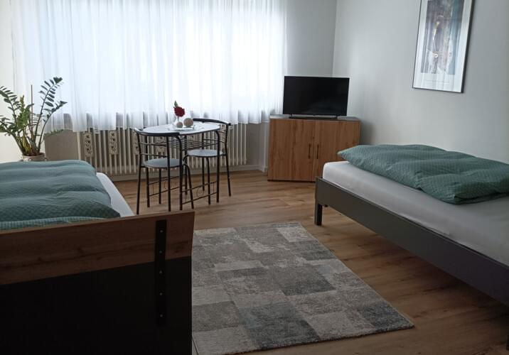 Unsere 2 neuen Doppelzimmer verfügen über je 2 Einzelbetten, Schrank, Sitzgelegenheit sowie Kühlschrank mit TK-Fach. Ebenso stehen in den Zimmern ein Wasserkocher mit Kaffee und Teepäckchen für Sie bereit.