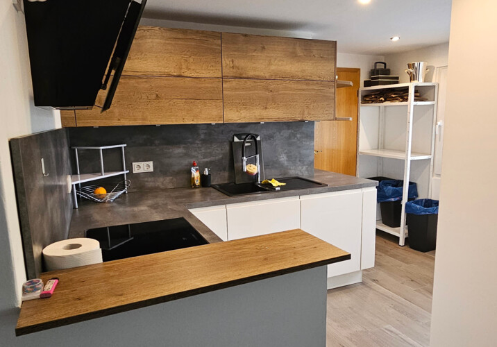 -voll ausgestattete Küche inkl Herd, Kühlschrank und Backofen