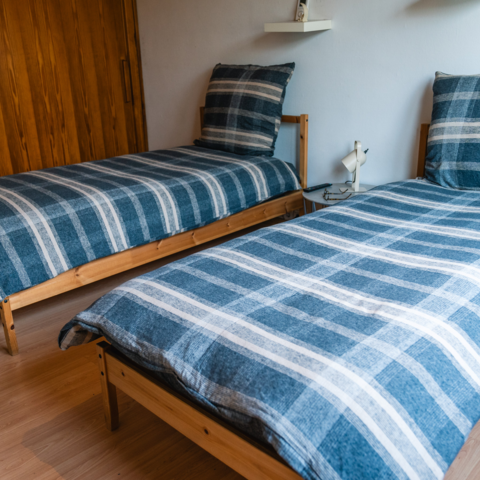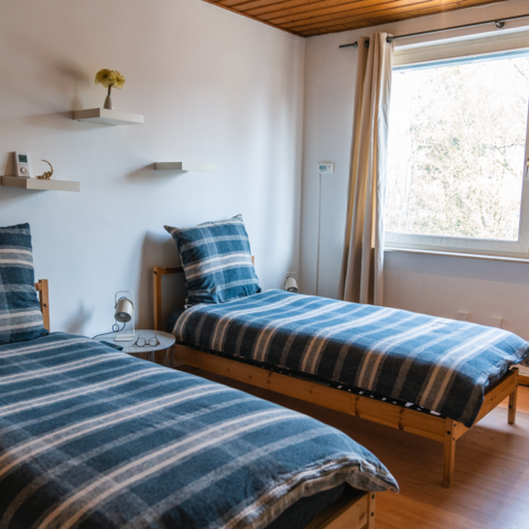 Schlafzimmer mit 2 separaten Betten inkl. Bettwäsche.