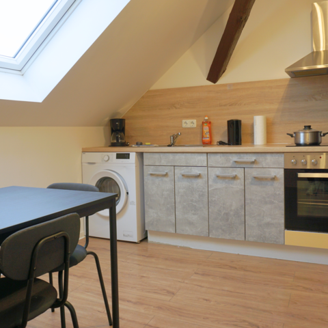 - Eigene voll ausgestattete Küche inkl. Kühlschrank, Herd, Mikrowelle (auf Anfrage), Kaffeemaschine, Wasserkocher