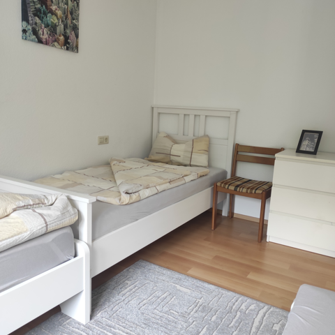 Die Wohnung ist möbliert, alles bequeme Einzelbetten.